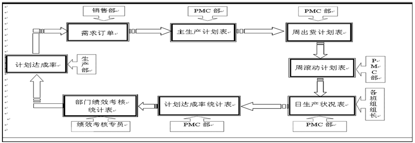 1.制訂日統計表,每天在生產協調會上匯報; 2.編制周績效考核匯總表,把按績效考核方案進行計算周實際得分; 3.對各部門績效考核結果每周在宣傳欄上進行公布。 |
